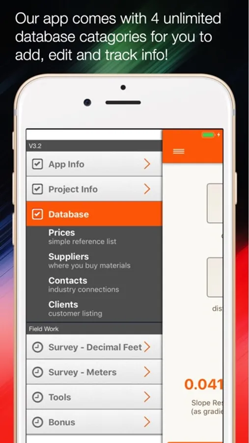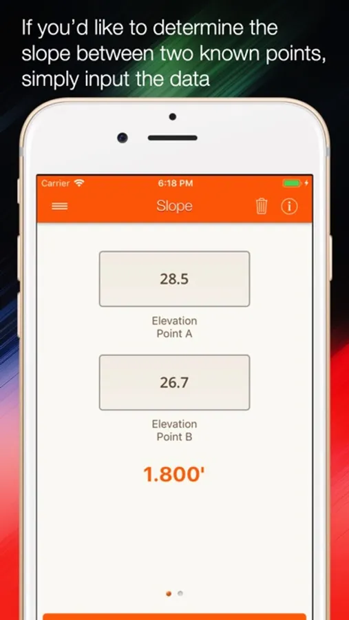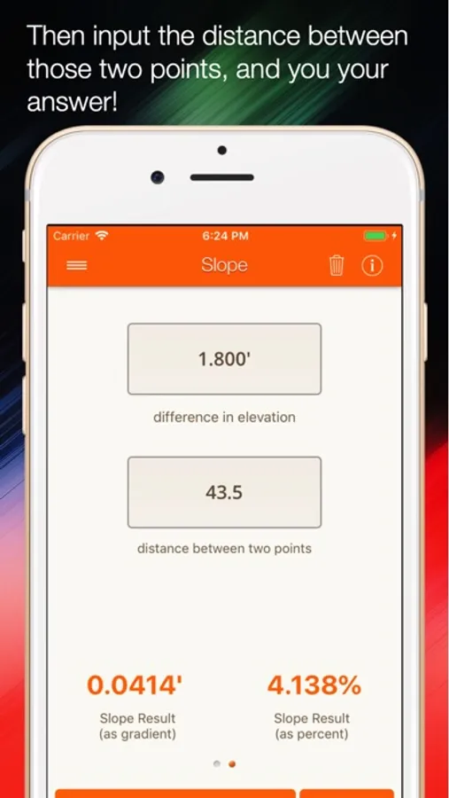 As a contractor or builder, do you need to find the difference in elevation to maintain a proper slope? Need to build a patio and figure out the difference in height to establish that 2% slope for drainage? Are you required to build a berm at a maximum slope of 33%? This app will calculate these and hundreds of other scenarios for you.
