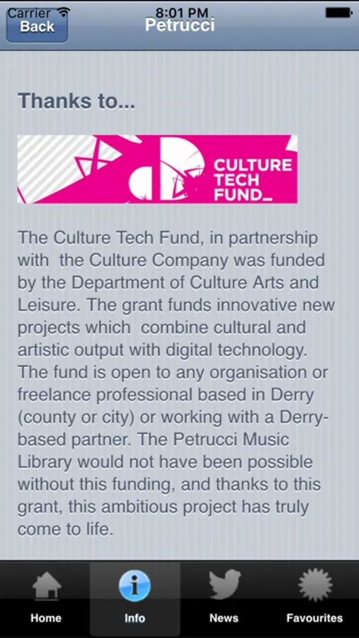 The application was awarded the Culture Tech Fund, in partnership with the Culture Company which was funded by the Department of Culture Arts and Leisure. The grant funds innovative new projects which combine cultural and artistic output with digital technology. The fund is open to any organisation or freelance professional based in Derry (county or city) or working with a Derry-based partner. The Petrucci Music Library would not have been possible without this funding, and thanks to this grant, this ambitious project has truly come to life.