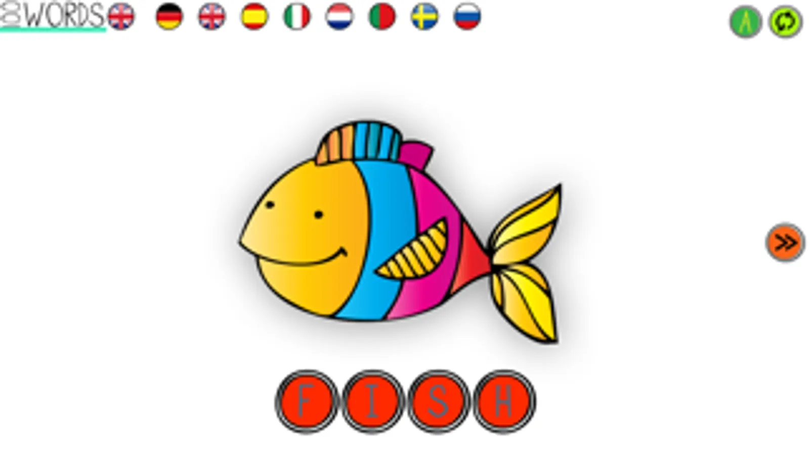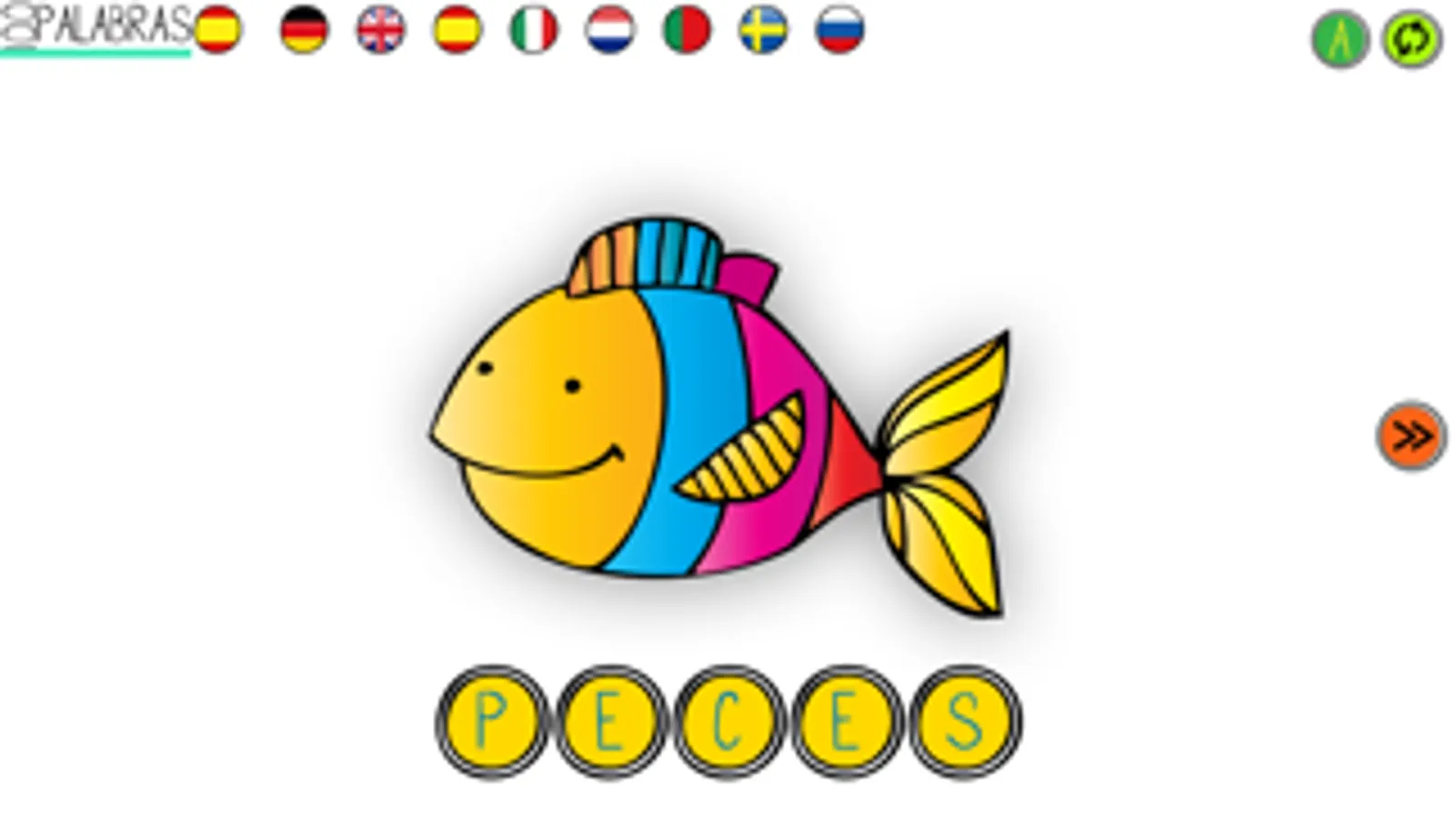 You can switch from one language to another to read and listen the name of the picture in 8 different languages. (English, German, Spanish, Italian, Dutch, Portuguese, Swedish, Russian)