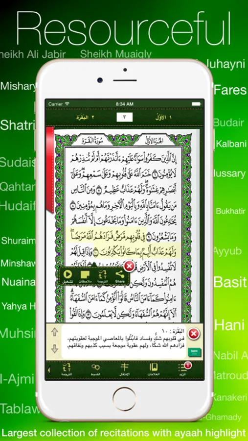 - Easy navigation by Juz, Surah, Ayah or Page.