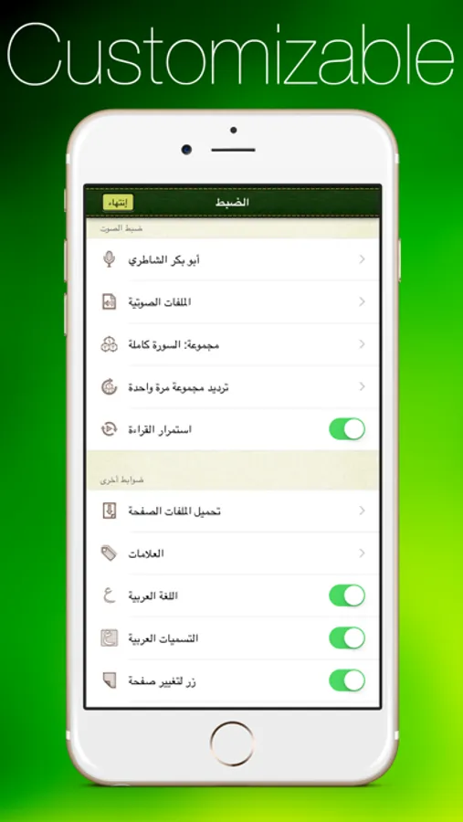 - English and Arabic languages with option to set only labels (Surah, Ayaah etc. ) and numbers in Arabic