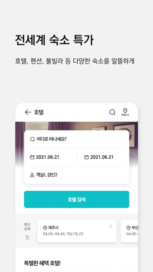 국내외 인기 호텔/리조트/펜션/풀빌라를 특가에 예약하세요