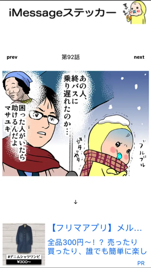 縦のフリックでコマを進め、横のフリックでページを移動します。