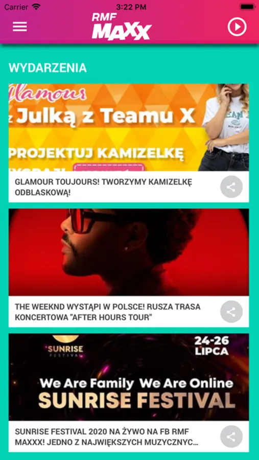 Aplikacja RMF MAXX umożliwia słuchanie radia, daje dostęp do najświeższych newsów i najlepszych konkursów. Sprawdzisz w niej również, co gramy na antenie i zagłosujesz na swoje ulubione hity na liście HOP BĘC. Ściągnij aplikację RMF MAXX i miej najlepszą muzykę zawsze ze sobą!