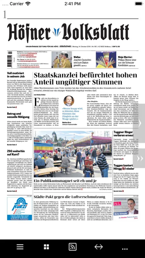 Das Höfner Volksblatt iPad App bringt die aktuellsten lokalen News und Inserate aus der Zeitung. Die News und die Inserate werden präsentiert wie im Print, jedoch mit einzigartiger Interaktivität, welche es angenehm und einfach macht den Inhalt auf einem iPad zu lesen. Artikel und Inserate können über Email, Facebook oder Twitter geteilt werden. Fotoalben und Videos zu Artikel können angeschaut werden. Abonnenten haben Zugang zu einem Archiv der letzten Ausgaben. Zusätzlich zu den Zeitungsseiten werden die neusten News von der Höfner Volksblatt Webseite und dem TV Service angezeigt, sowie spezielle Rubriken mit den Immobilien-, Job-, Event- und anderen Inserate aus der Zeitung. Falls Sie Fragen bezüglich der iPhone App haben, wenden Sie sich bitte an das Höfner Volskblatt, redaktion@hoefner.ch