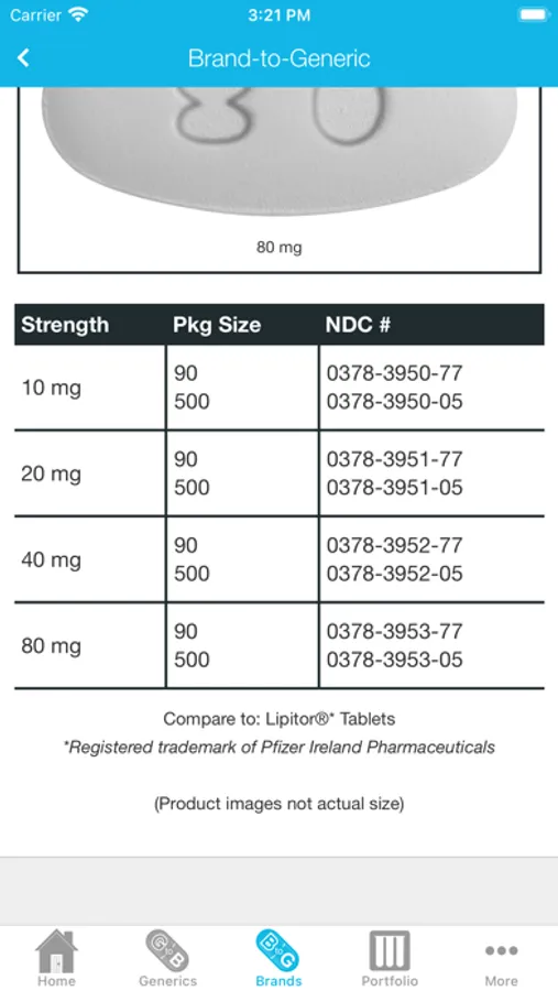 • If a Legacy Mylan product is available, the color photograph(s), strength(s), package size(s) and NDC number(s) will be displayed below the search result.