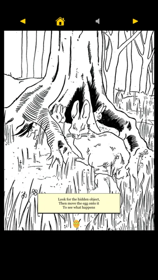 In the puzzles, each illustration opens as a black and white image. To see the classic holiday illustration in full-color, just move the Easter Egg to the hidden object.