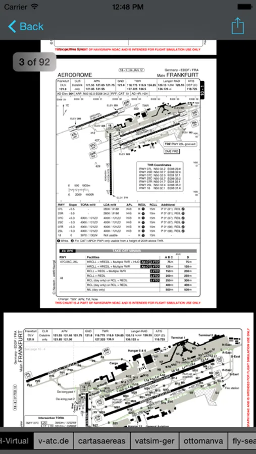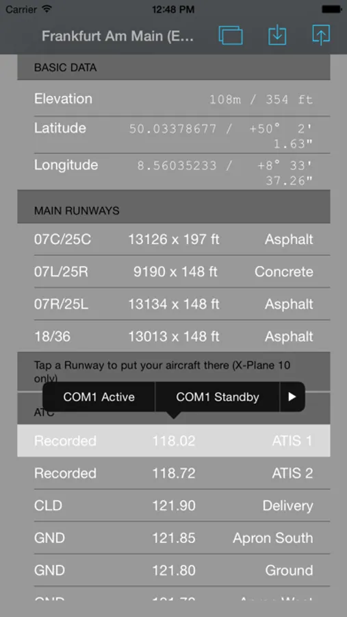 - COM and NAV frequencies (ATC, ILS, VOR)