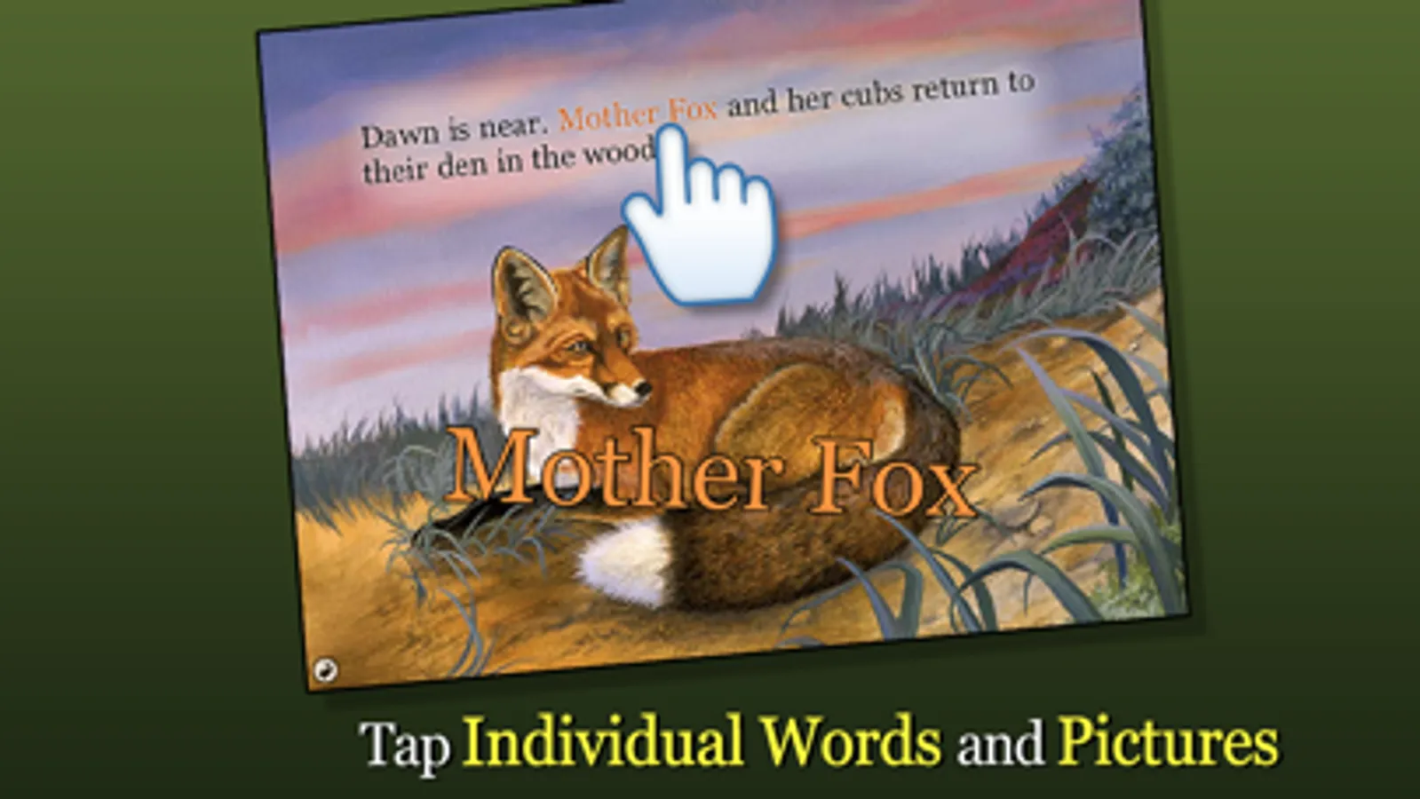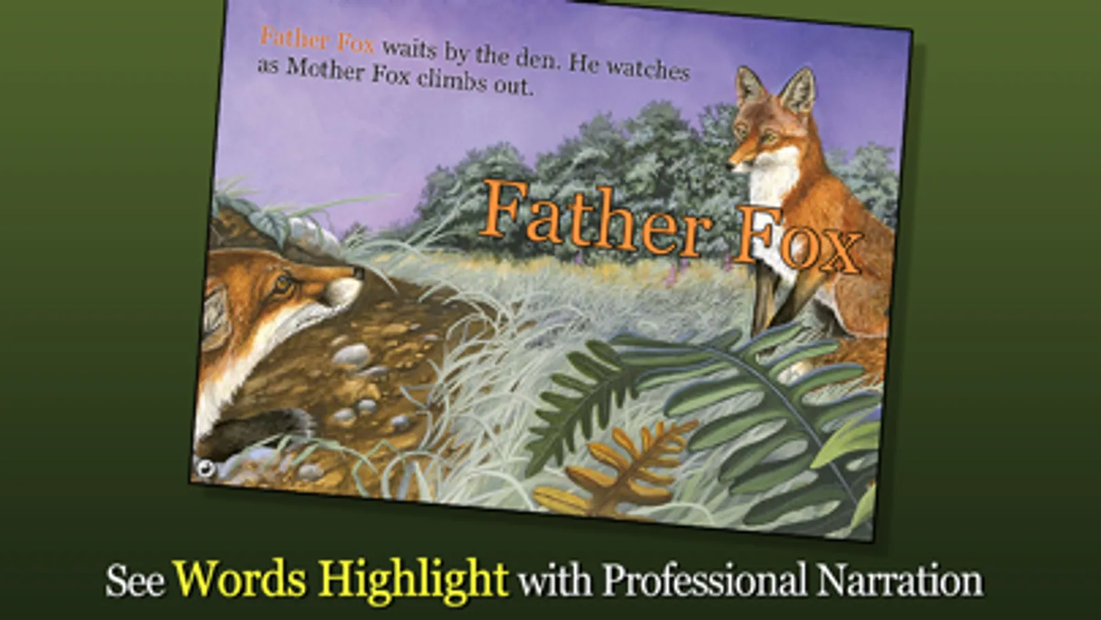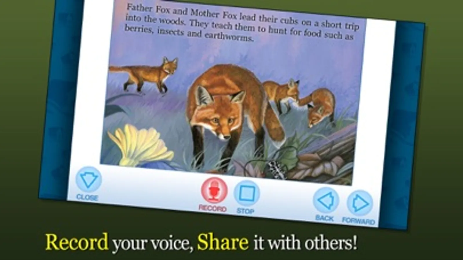 Join Mother and Father Fox as their teach their four cubs to hunt, escape danger, and survive on their own. Explore pictures, learn new vocabulary, and personalize the story with your own narration. Their skills are tested when a coyote appears in the distance. How will the baby cubs react?