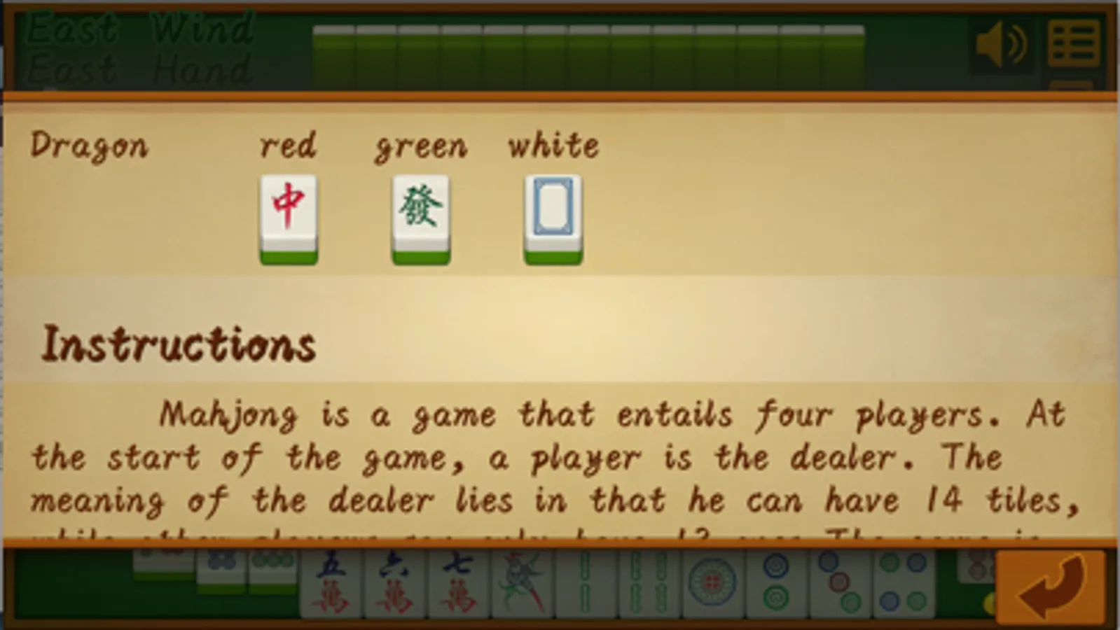After the tiles in your hand are all useful and you only need the fourteenth one to win, and now you are in the stage of ready hand. For example, you have gathered together three sequences, a triplet and a tile of East Wind, you can declare a win if anyone discards or you self-draw a tile of East Wind (you have to gather together special tiles in case of winning special points). In many cases, you can wait for more than one necessary tile, which will grant you more opportunities to win. For example, if you have gathered together two sequences, a triplet and a couple of pairs, and there remains an incomplete sequence of Character Two and Character Three, you may wait for Character One or Character Four to win.