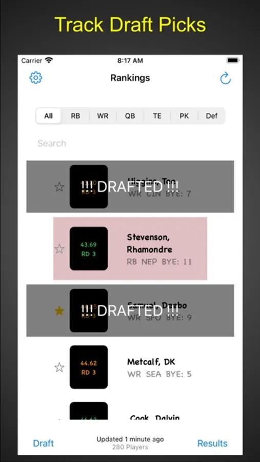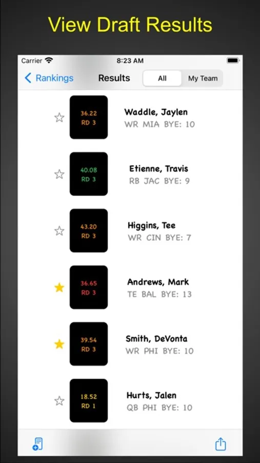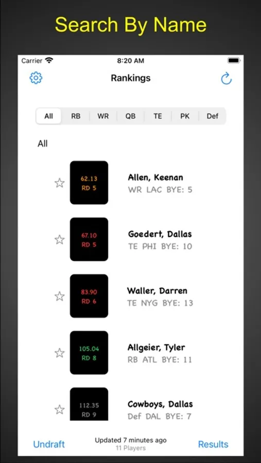 Get average draft position (ADP) rankings. Star your favorite players. Find out when the players you want are getting drafted. Tap Refresh for up-to-date players and rankings.