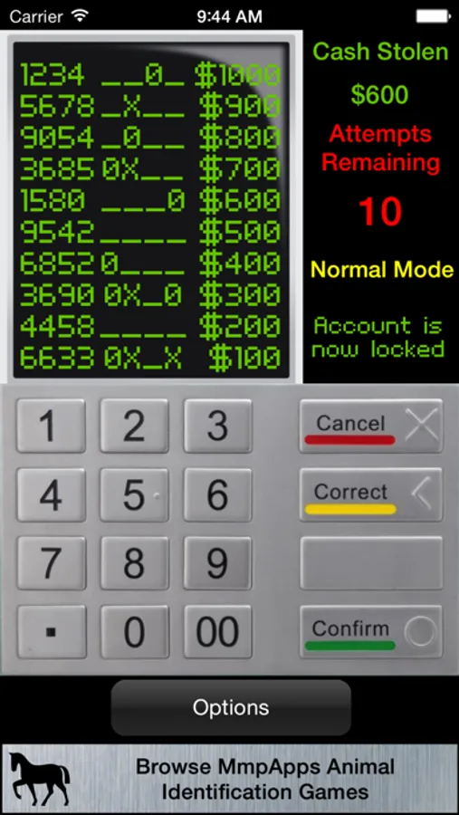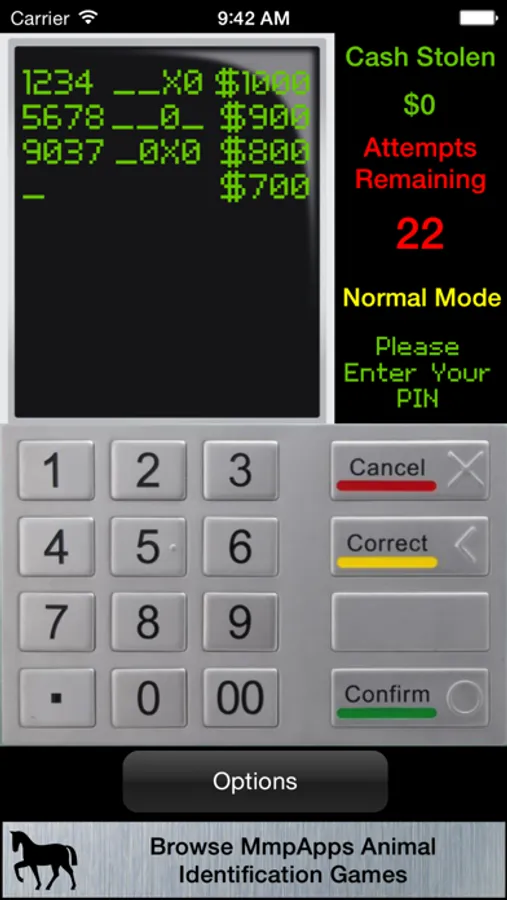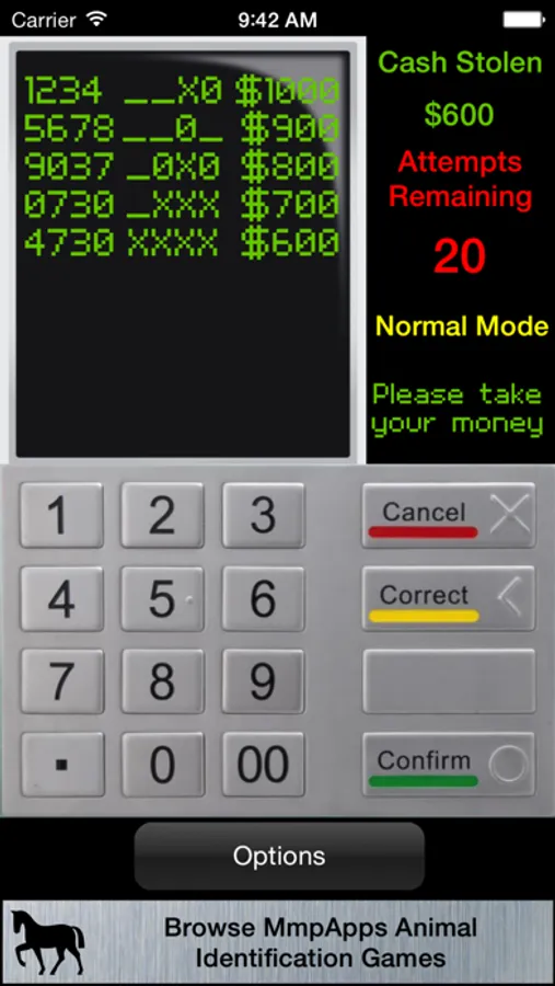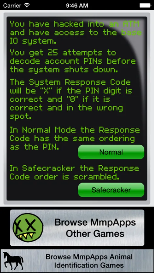 In the free game the ATM system give you clues you use to decode the PINS. In Safecracker Mode the clues are even more challenging.