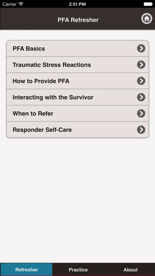 The Psychological First Aid (PFA) Tutorial provides a quick and thorough review for those who have previously received training to provide PFA. First responders, health care providers, mental health providers, MRC volunteers, students, and others will find this an easy to use resource while in the field following a traumatic event, natural disaster, public health emergency, act of terrorism, or personal crisis.