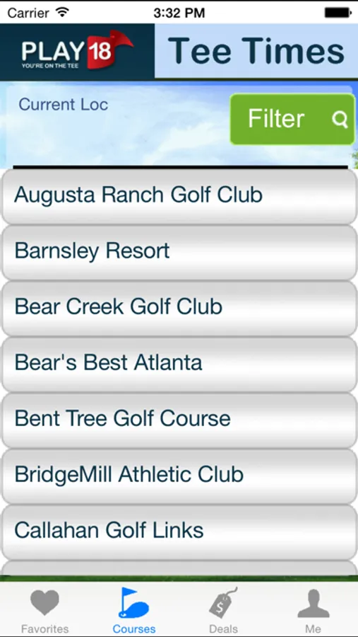 The Play18 Golf Tee Times Application allows booking at over thirty of the top golf courses in Georgia.