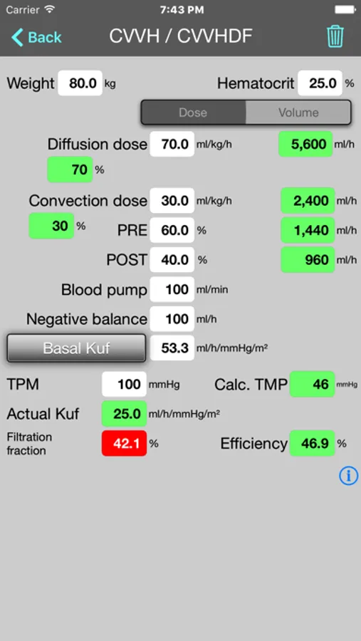 - Frequently used calculations in the patients under CVVH and CVVHDF. Calculations about the dose and volume of convection in PRE and POST, volume of diffusion, calculation of the Kuf of the filter based on the transmembrane pressure (TMP), calculation of the anticipated TMP before initiating the technique, calculation of the filtration fraction (FF) and calculation of the efficiency of the filter.
