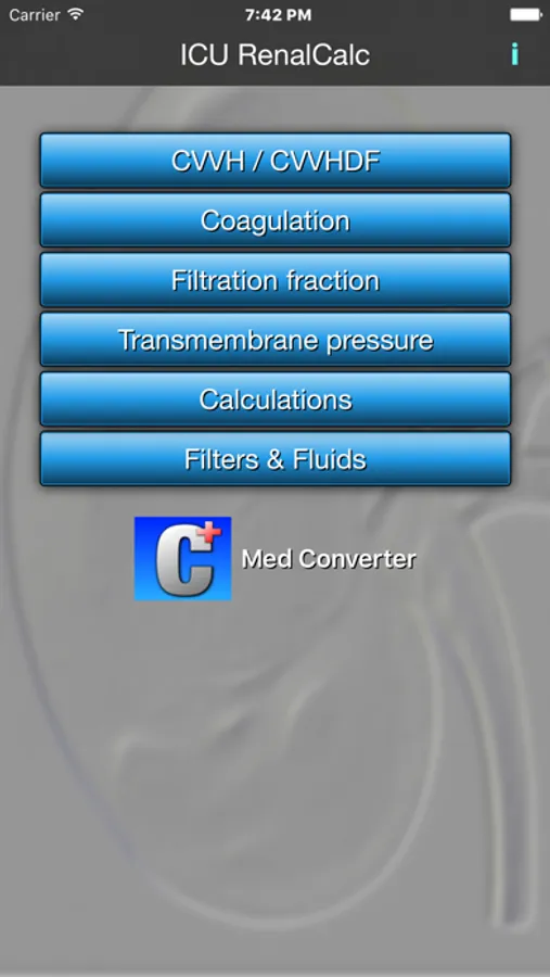 I.C.U. RenalCalc provides the most frequently used calculations next to patient bed, when continuous renal replacement techniques are required. The application also warns about certain situations that can endanger the filter. ICU RenalCalc® offers the following options:
