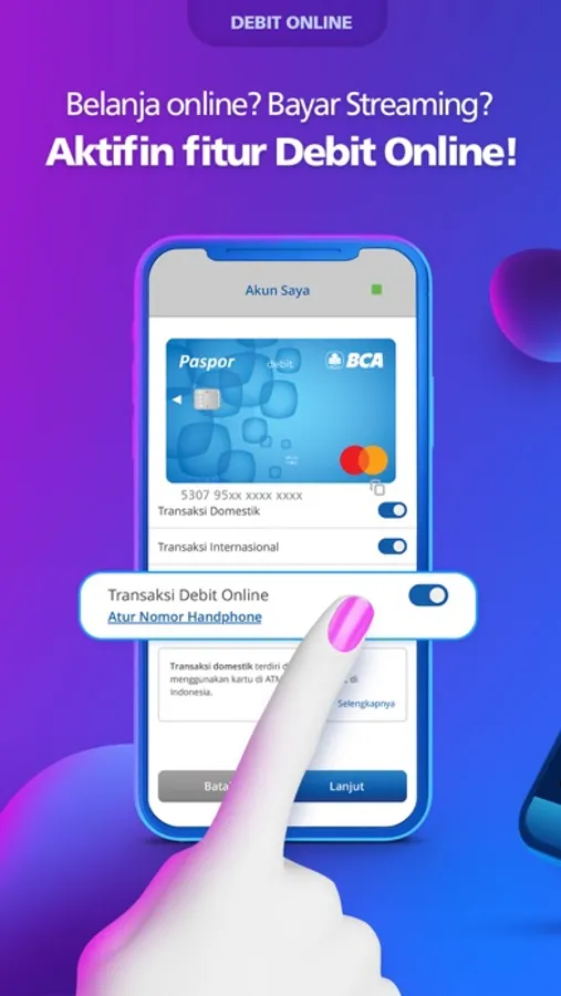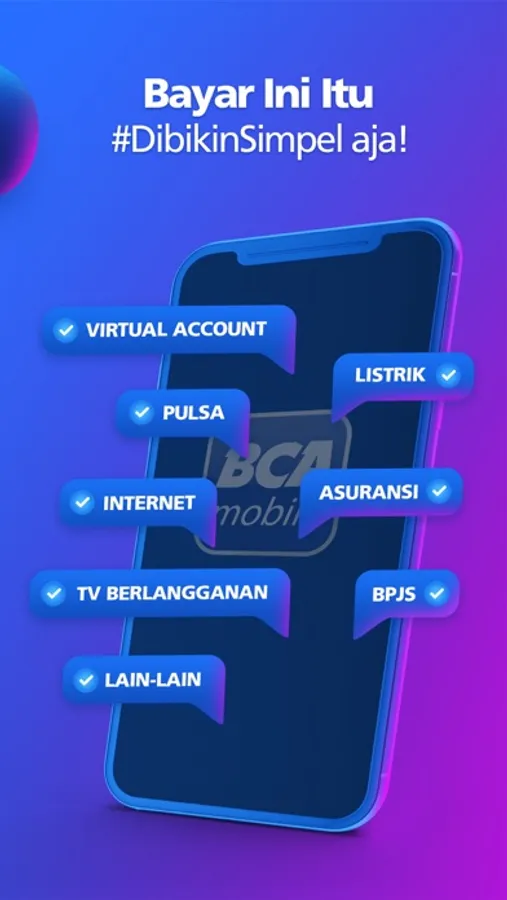 Bank on the go with BCA mobile app. Conduct non-cash transactions using BCA mobile banking (m-BCA) and BCA internet banking (KlikBCA Smartphone) whenever, wherever.