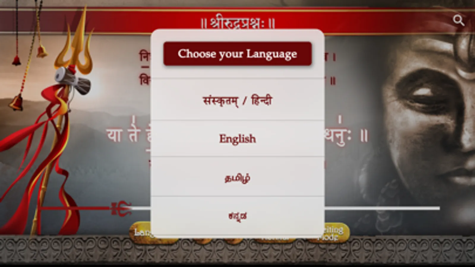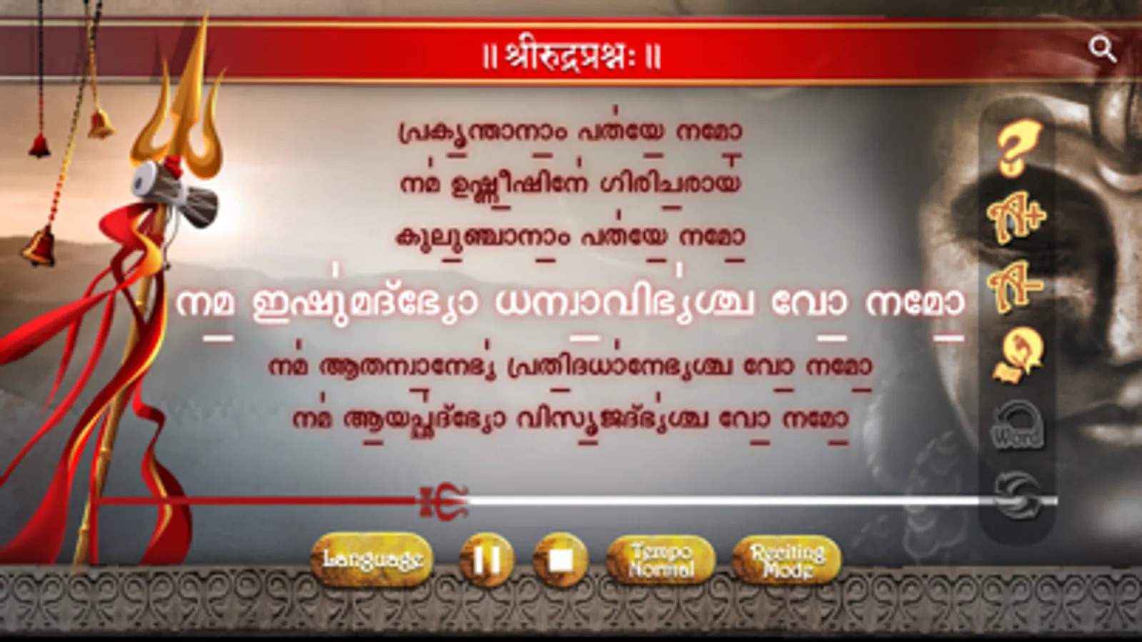 2. Multi-language support for Shri Rudram in Telugu, Hindi, Sanskrit, English, Tamil, Kannada, Malayalam and more to be included.