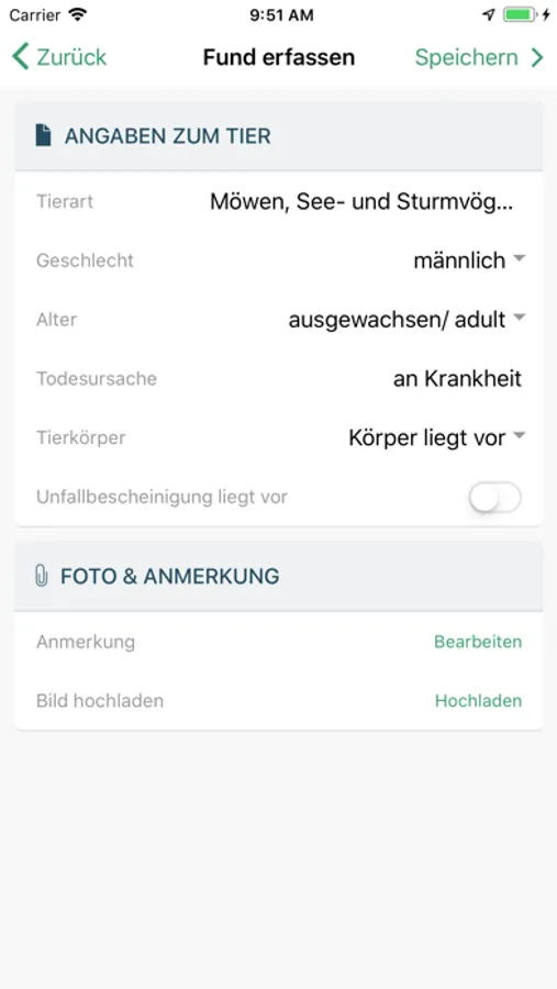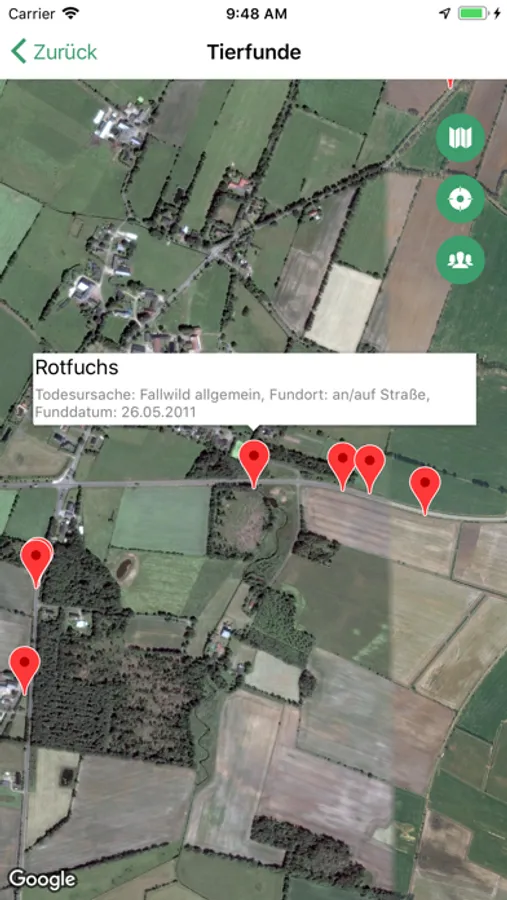 Mit der App kann man nun auch Mobil die gefundenen Opfer von Straßenverkehr, Windenergieanlagen, Zäunen etc. erfassen und melden.