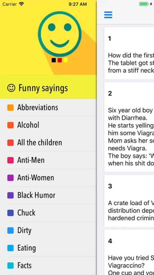 Share the funny sayings with your friends and make them laugh. Everyone needs his daily dose of fun and we hope this app can do something about it.