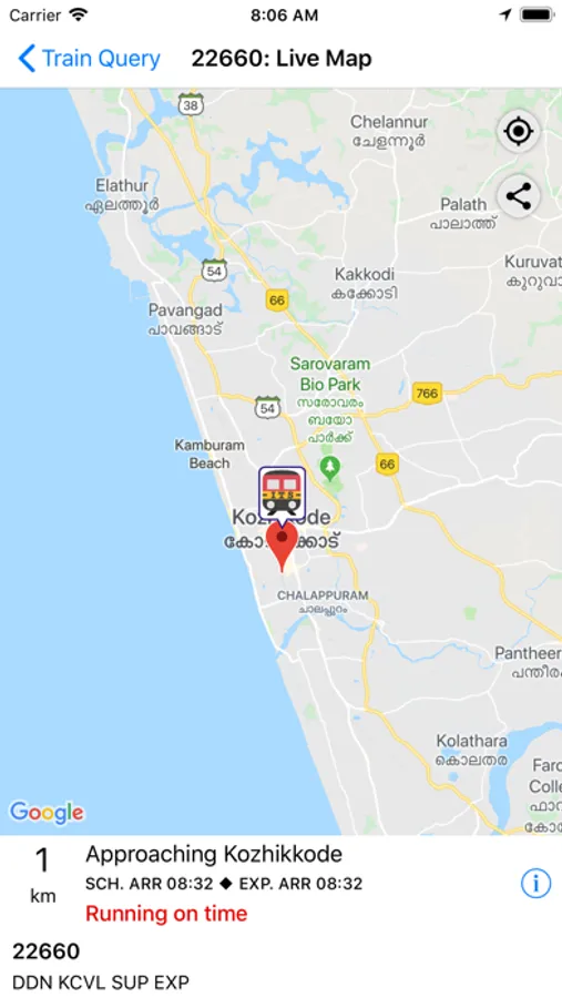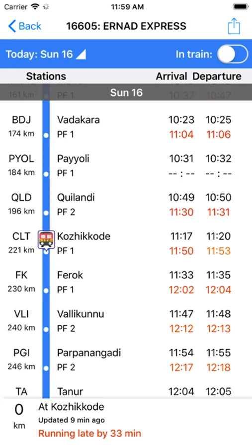 Train status information shown is from the National Train Enquiry system - http://enquiry.indianrail.gov.in