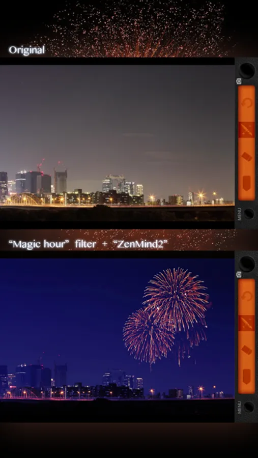 ◆ Apply natural gradation on the fireworks by indicating the horizon.