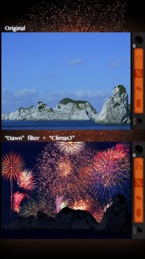 ◆ Free hand stroking on the fireworks image to hide and show details.