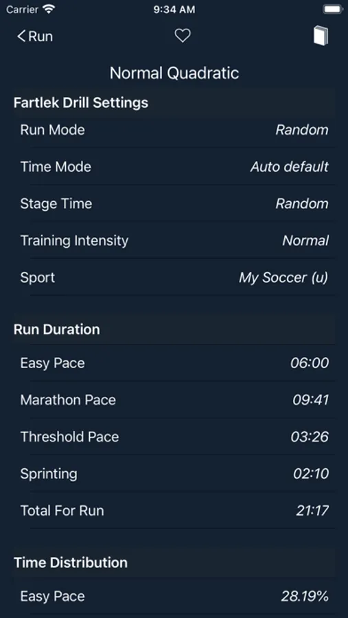 The Fartlek App has a “random” mode, in which the engine generates the number of stages, training intensities and durations based on a given sport. You can also make your own time distribution (percentages) schemes.