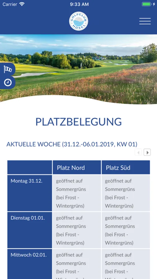 - Platzbelegungsplan für Nord-/ Südplatz & Drivingrange