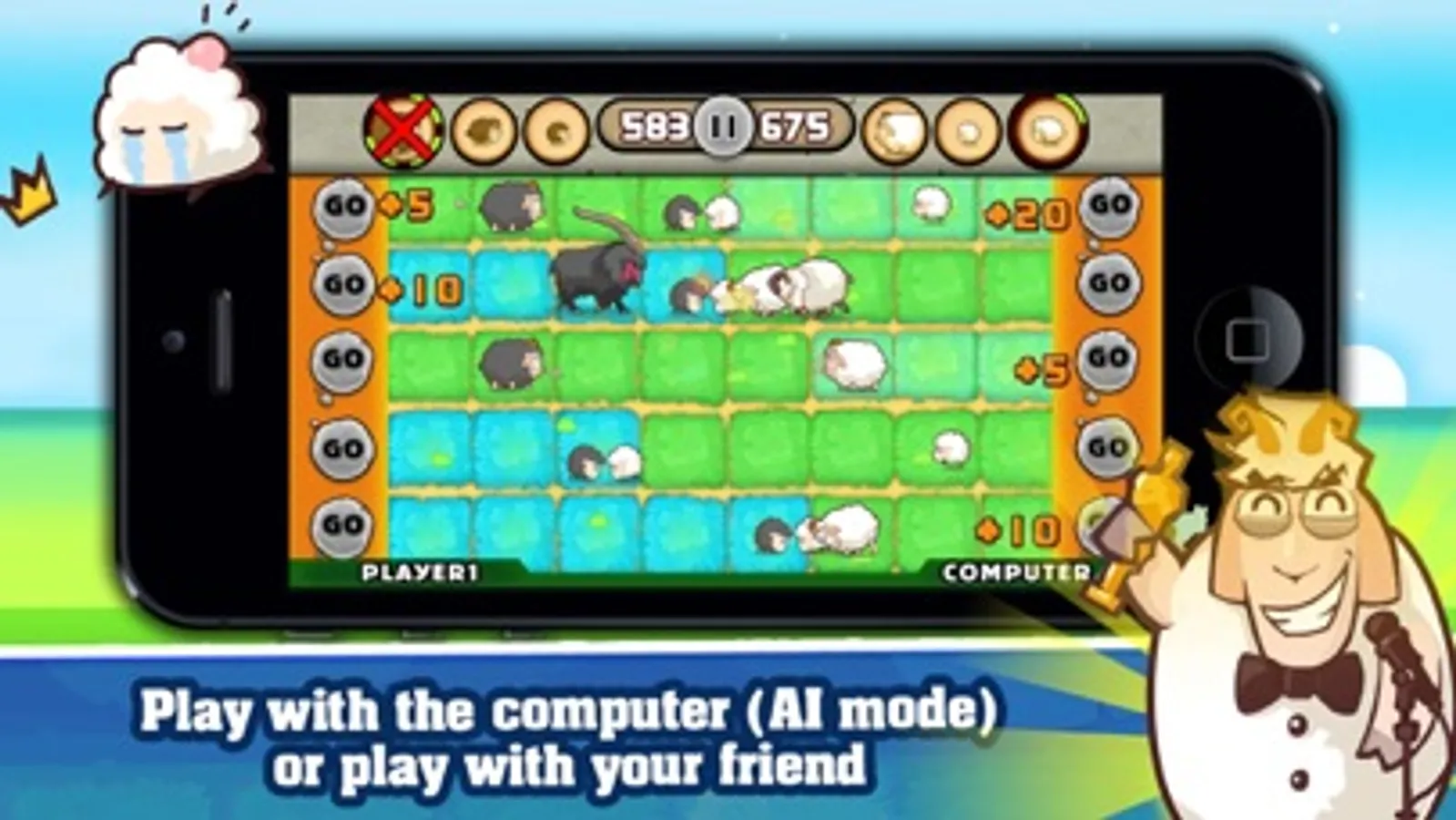 Bump Sheep has a unique mix of good strategy and quick reflex. You can play it in single-player mode against the computer. Or yon can play it with your friend in the same device for more fun