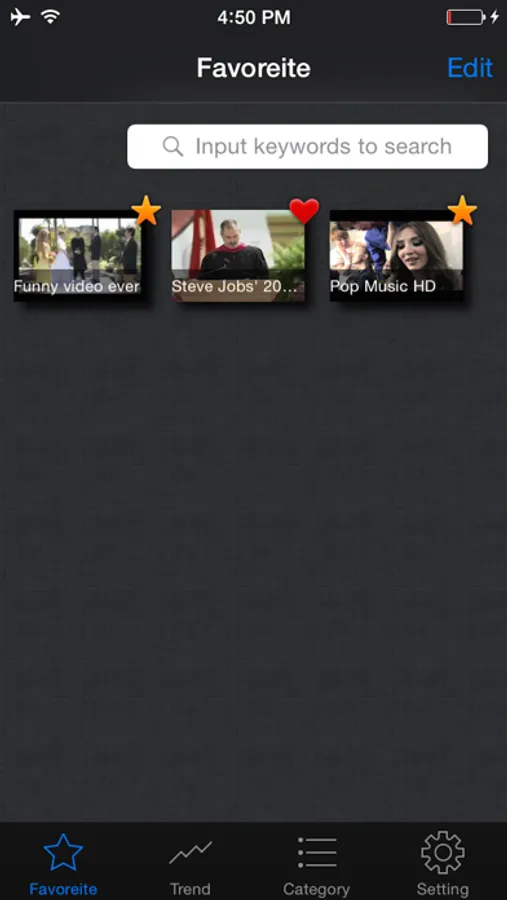 Operation are simple, search videos using any keywords. Videos will start playing immediately. Save this keywords by pressing Star button located in top right for farther play. If you want to favorite currently playing video only to play in a loop later then tap Heart button.