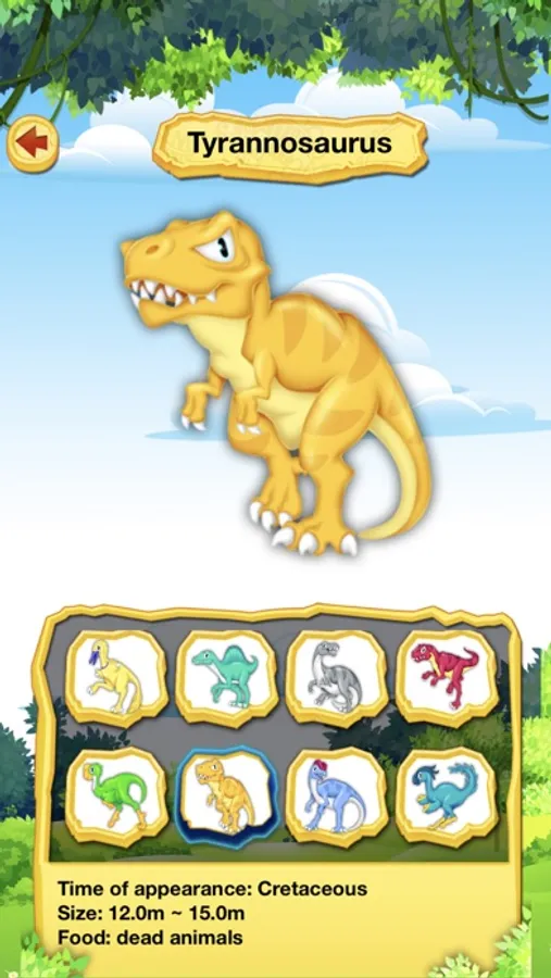 Alioramus, Coelurus, Sinosauropteryx, Ornithomimus, Suchomimus, Coelophysis, Dimetrodon, Deinocheirus, Ornitholestes, Eoraptor, Deinonychus, Gorgosaurus, Shuvuuia, Spinosaurus, Herrerasaurus, Allosaurus, Oviraptor, Tyrannosaurus, Dilophosaurus, Khaan