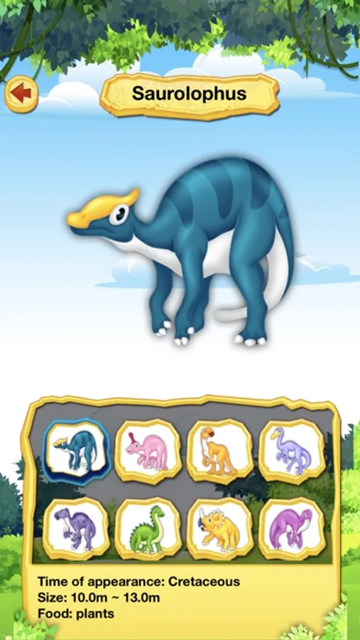 Saurolophus, Tsintaosaurus, Muttaburrasaurus, Gallimimus, Iguanodon, Nigersaurus, Centrosaurus, Hadrosaurus, Microceratus, Stegosaurus, Corythosaurus, Ouranosaurus, Lambeosaurus, Brachiosaurus, Triceratops, Parasaurolophus, Heterodontosaurus, Pachycephalosaurus, Einiosaurus, Edmontonia