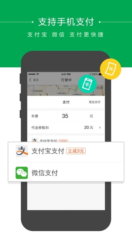 - 快的打车是支付宝、淘宝网、淘宝旅行、百度地图、高德地图、去哪儿网、携程、艺龙、高铁管家、中国国航等上百家APP首选的打车服务伙伴!