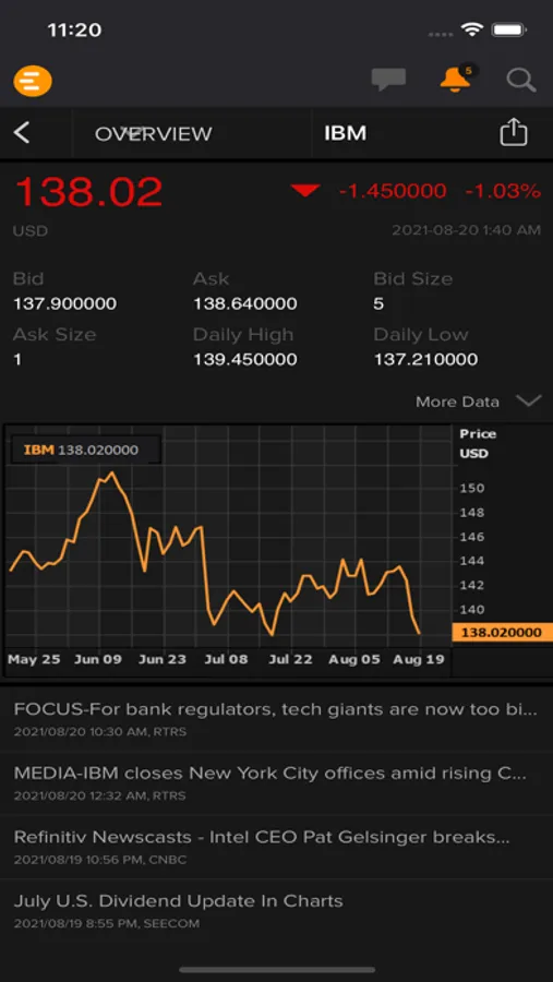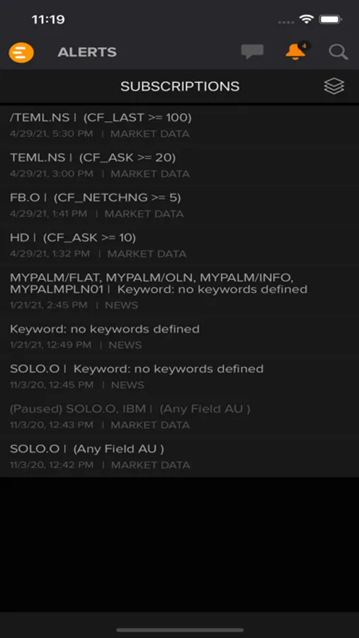 • Custom alerts for market data, news, research and more