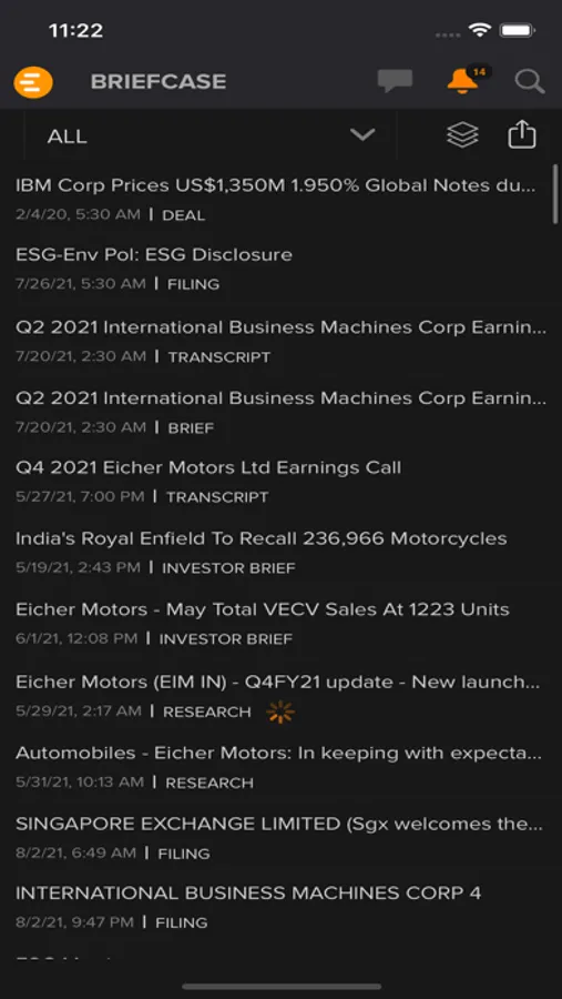 • Ability to save news and research in Briefcase for availability in offline mode