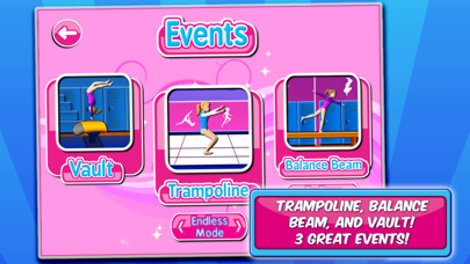 Welcome to Gymnastics Events. Learn the vault, trampoline, and balance beam. Compete and win a medal!