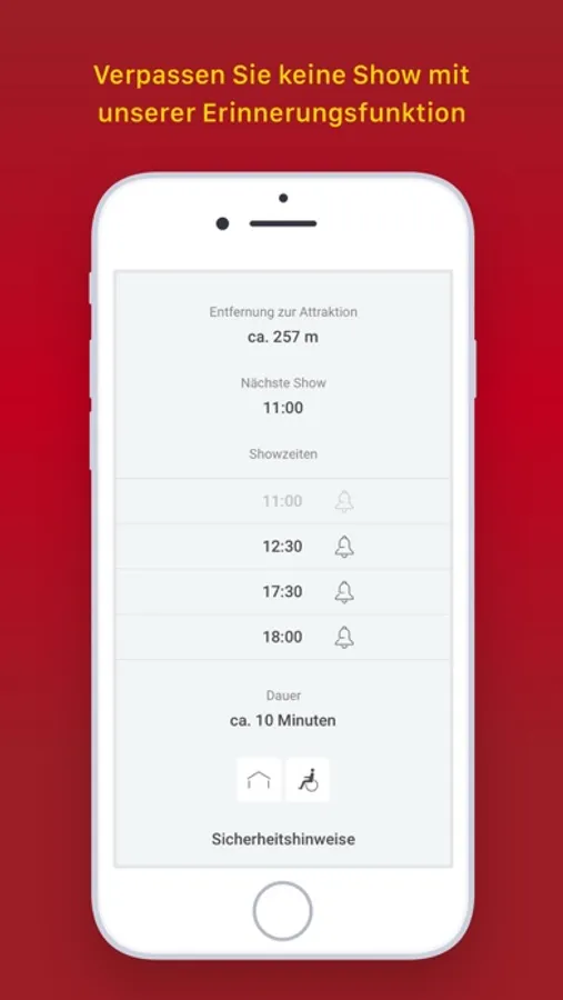 Für die Showzeiten-Erinnerungsfunktion ist der Zugriff auf den „Kalender“ des Mobiltelefons erforderlich.