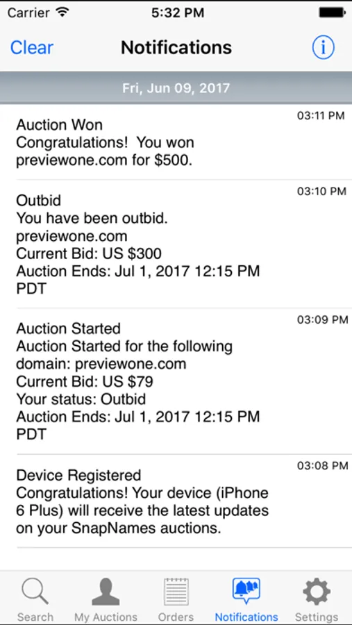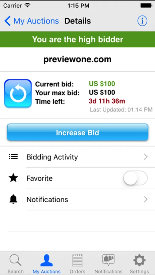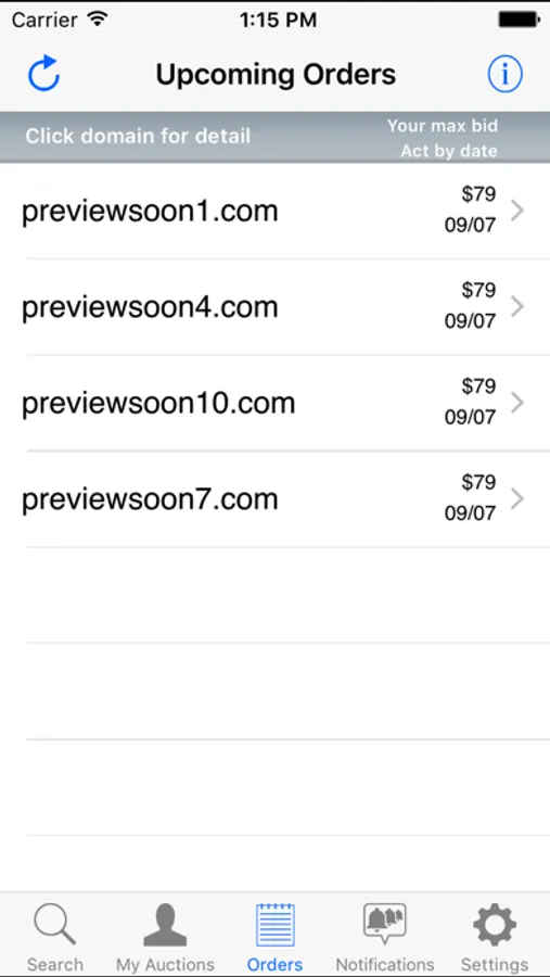 - Search domain auctions and place new bids, backorders or Buy It Now orders from your iPhone