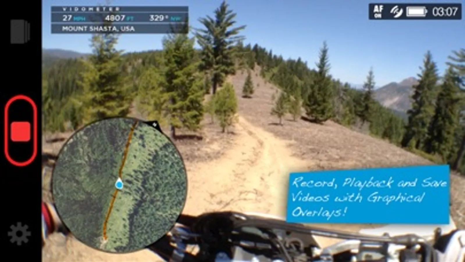 Don't forget to take Vidometer along for the ride - use it when you are out Mountain Biking, Skiing, Snowboarding, Skateboarding, Hiking, Sky Diving, Racing, Karting, Running, Dirt Biking, Flying, Skating, Rollerblading, Geocaching, Video Mapping, Navigating, Jumping up and down, or whatever! Vidometer functions great as a HUD, GPS Recorder, Dash Cam, Geocoder, Reverse Geocoder, Aviation, action sports recorder, and more!