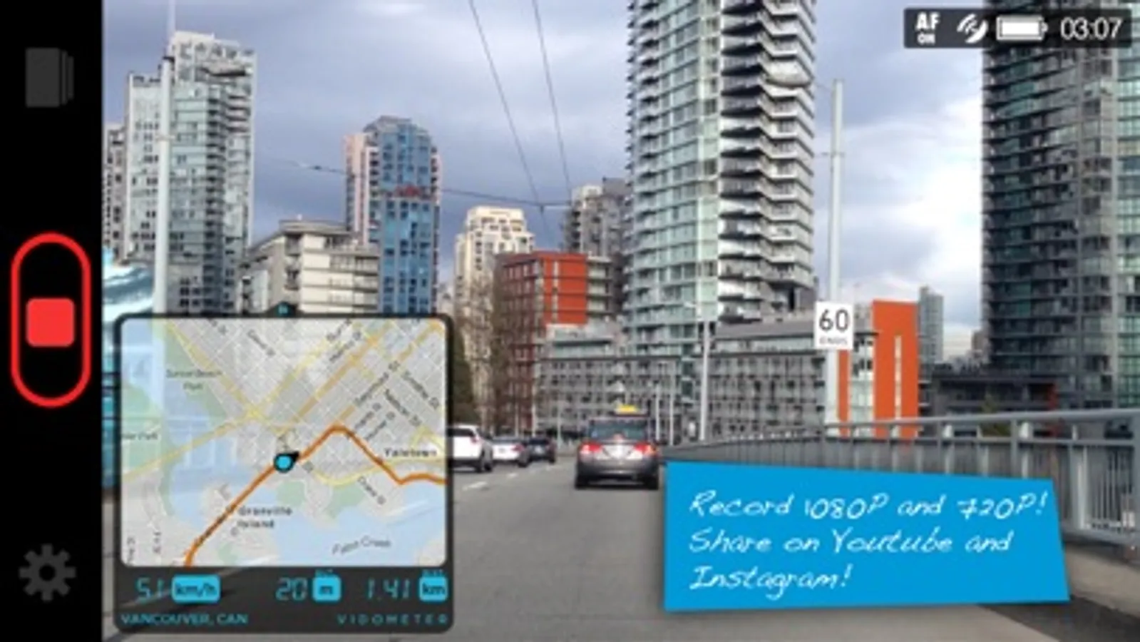 Vidometer - pronounced like speedometer - records HD video with an animated graphical overlay. Watch the live camera feed, play back videos, save videos, and share your videos on YouTube, Instagram, Facebook, and more.