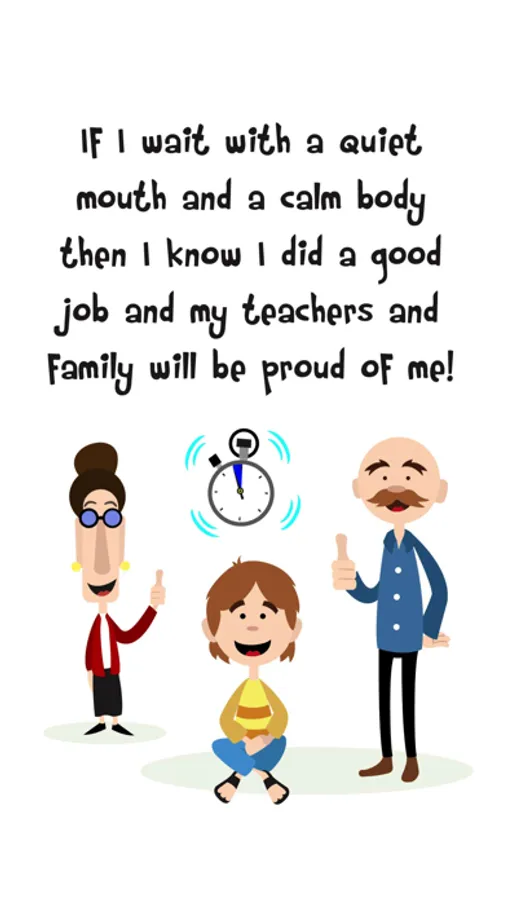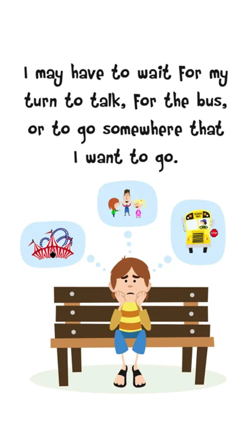 The app also includes a social story about waiting and the Wait Timer. The social story talks about frustration that may happen with waiting, and how to wait for something you want.
