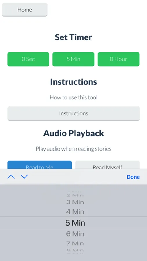 The settings and instructions screen allows you to choose the amount of time the timer is set for, and includes instructions for the parent or caregiver on how to introduce the Wait Timer.