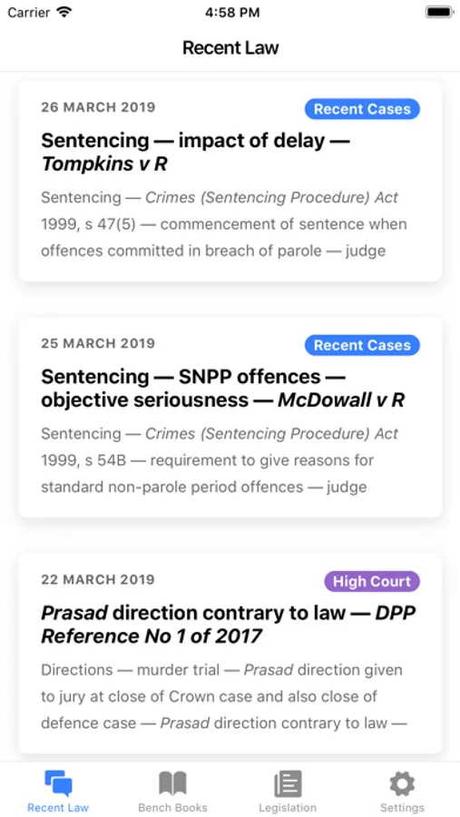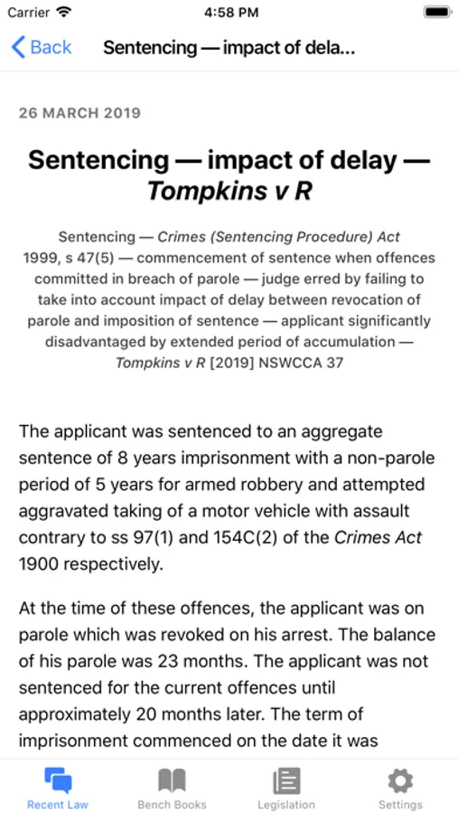 This app is designed to be of use for judicial officers, lawyers and police prosecutors, as well as law students from New South Wales, particularly when working in locations where there is limited internet access available.