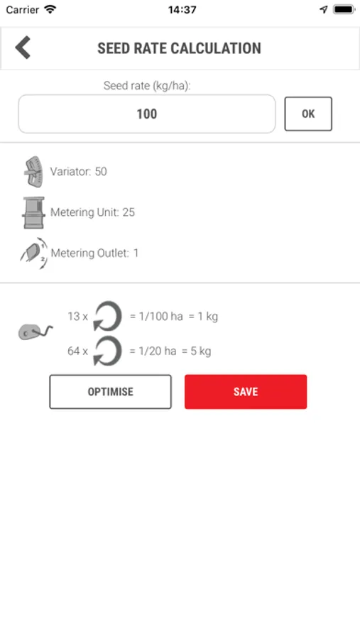 Kuhn has developed a calibration assistant to help you determine the appropriate settings for your seed drill and seeding conditions (seed type, quantity, etc). This application will also provide you with a seeds/m² to kg/ha convertor.