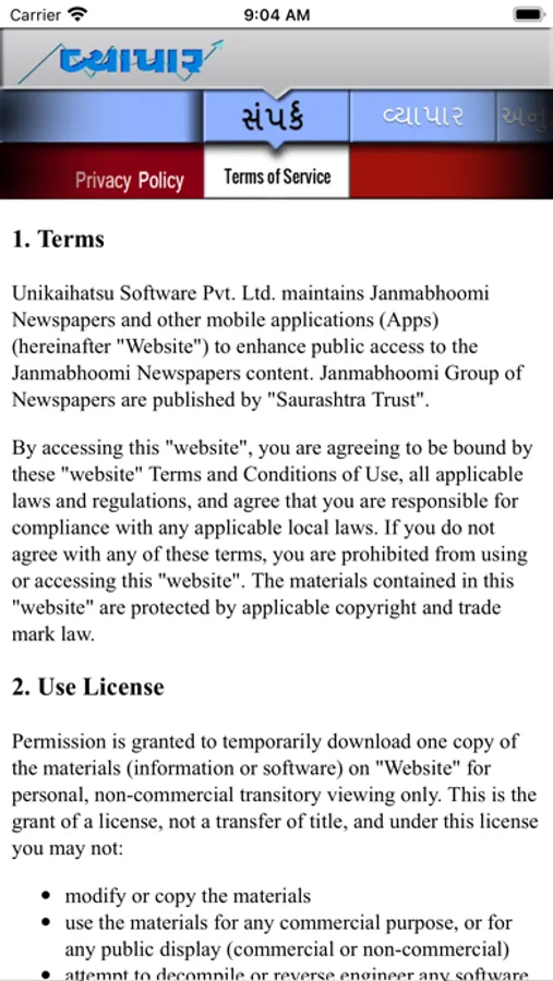 7. Terms of Use - http://www.usindia.com/index.php/en/48-mobile-apps/264-terms-of-use