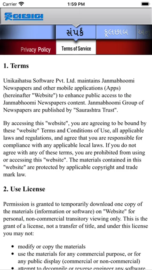 7. Terms of Use - http://www.usindia.com/index.php/en/48-mobile-apps/264-terms-of-use