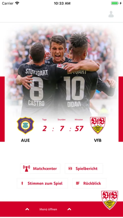 * Matchcenter mit original VfB Live Ticker und umfangreichen Statistiken am Spieltag