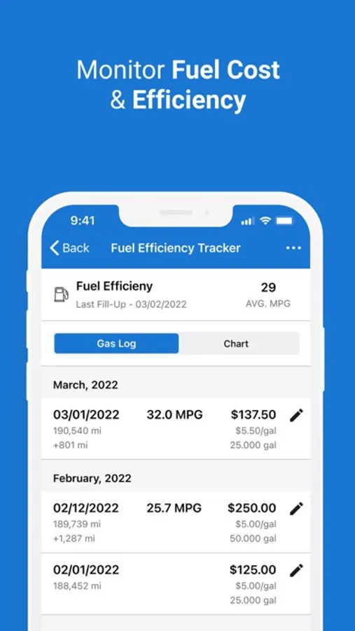Update your car’s odometer reading and start tracking its fuel efficiency.