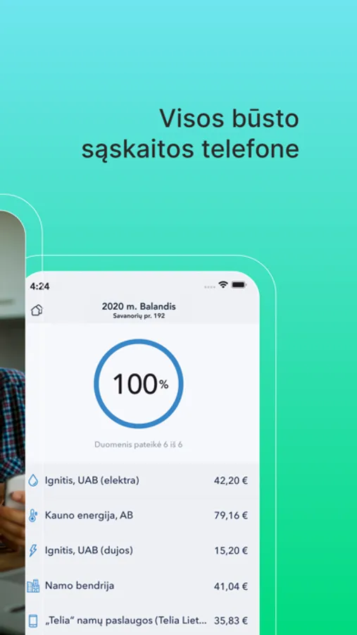 Lengvas ir paprastas namų ūkio sąskaitų apmokėjimas su Viena sąskaita mobiliąja programėle.